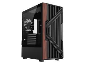 DIYPC DIY-G18-WD Black USB3.0 /Type C ATX Mid Tower Gaming Computer Case w/ Tempered Glass Side Panel and Walnut Wood Front Panel. 4 x 120mm PWM Fan Pre-Installed