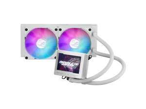 ASUS ROG Ryujin III 240 ARGB WHT all-in-one liquid CPU cooler with 240mm radiator. Asetek 8th gen pump, 2x magnetic 120mm ARGB fans (Daisy Chain design), 3.5” LCD display